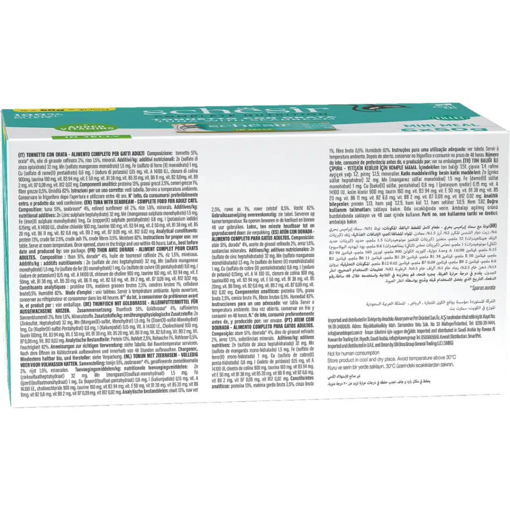 İçerik : Ton Balığı %51.00, Çipura %4.00, Rafine Ayçiçek yağı %2.00, Pirinç %1.50, Mineraller %0.50.